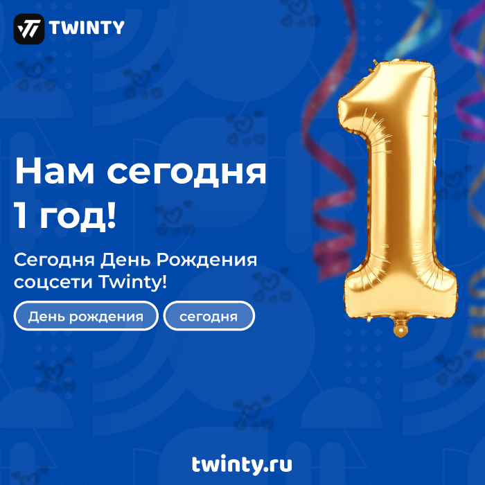 Друзья! Сегодня у нас особенный день — социальной сети Twinty исполняется 1 год!
